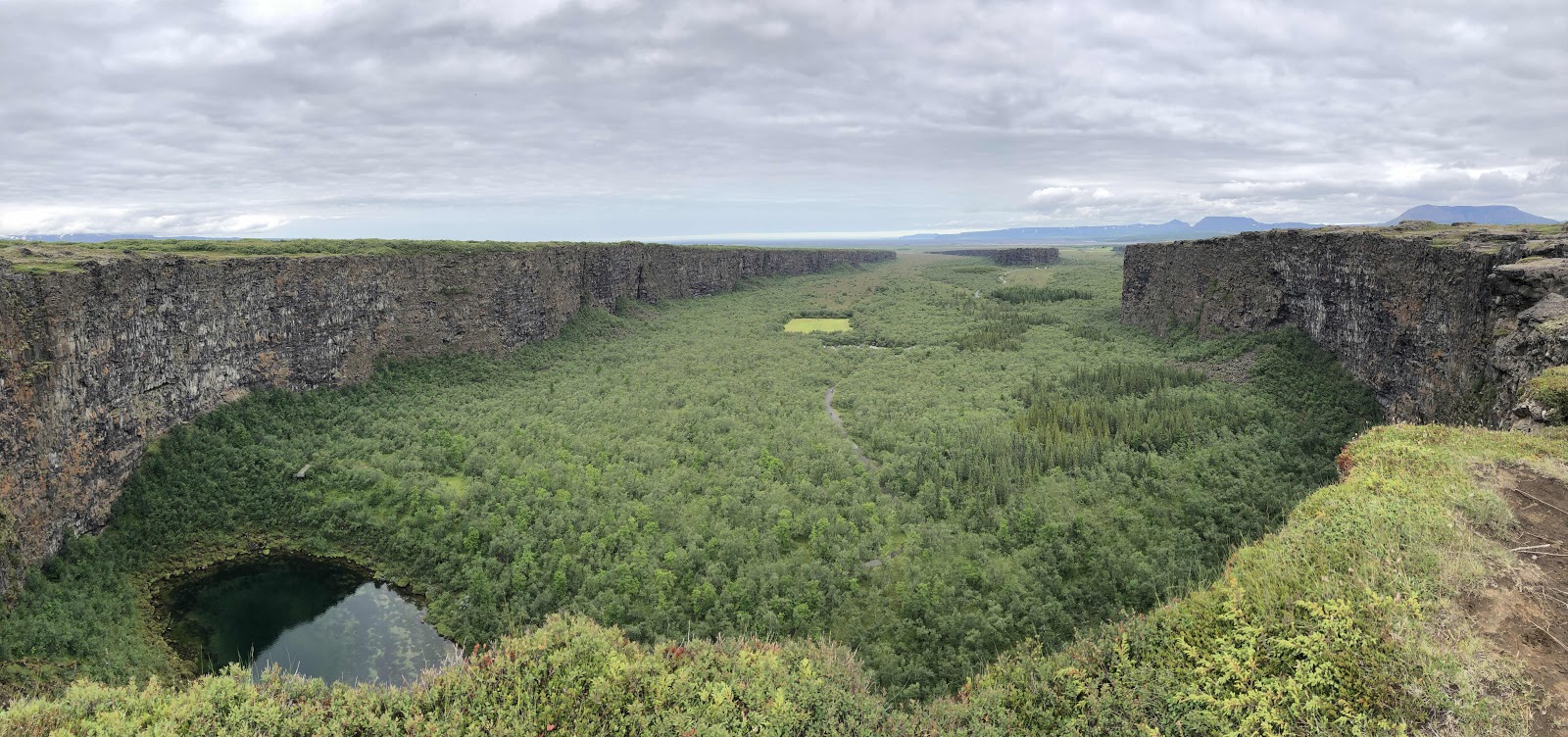 Heute standen mehrere kleine Wanderungen auf dem Programm. Die Erste führte uns vom Campingplatz aus auf den Felsen Eyjan, von welchem wir einen guten Überblick über die Schlucht Asbyrgi hatten. Zurück am Campingplatz starteten wir die zweite Wanderung zum Klappir, von wo aus wir die hufeisenförmige Schlucht und deren Dimension noch besser sahen.