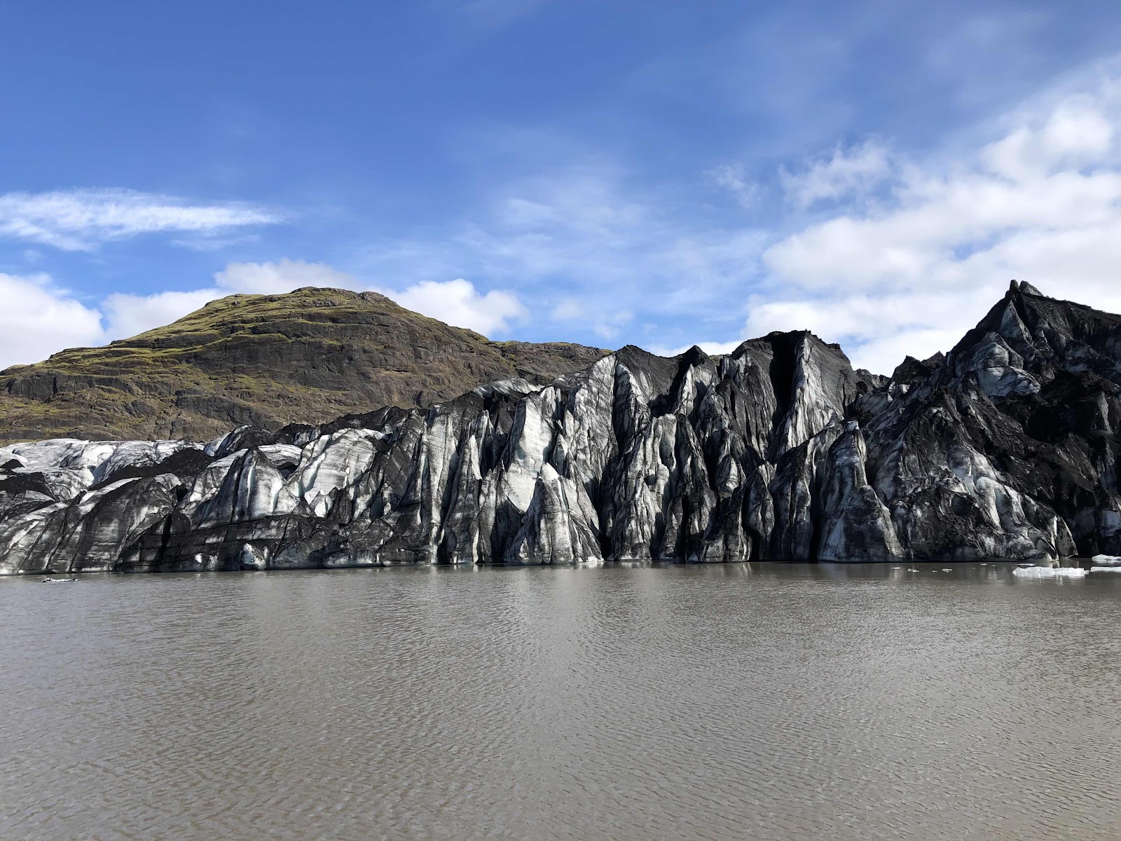 Bei warmen Temperaturen marschierten wir vom Campingplatz los in Richtung Gletscher. Nach knapp 2h erreichten wir den Gletscherrand und hatten einen grandiosen Ausblick auf den Huldufjöll, der ein kleiner Gletscherarm des gesamten Myrdalsjökull Gletschers ist.
