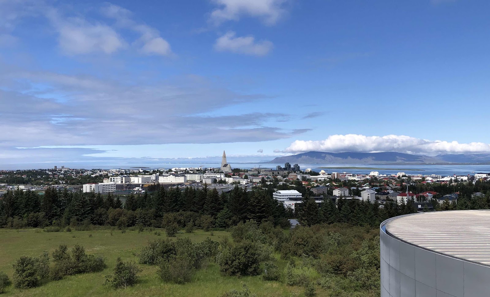 Wir tuckerten langsam los und visierten die Hauptstadt Reykjavik an, in der über ein Drittel der Bevölkerung lebt. Kurz vor dem Stadtzentrum machten wir beim Perlan, einem grossen Warmwasser-Speicher, halt und bestaunten die Aussicht von dessen Dach auf den Grossraum Reykjavik.