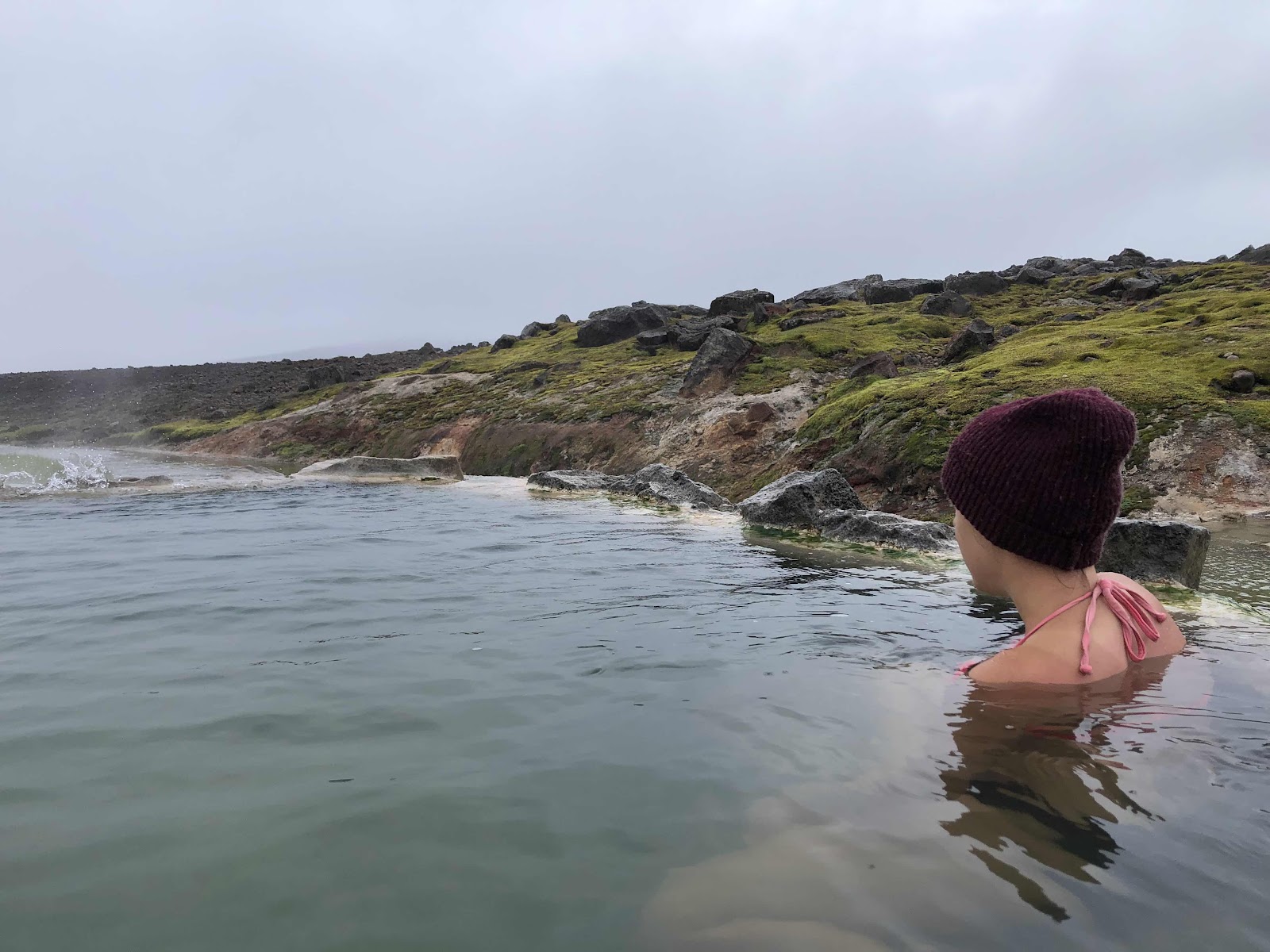 Da meine liebe Reisebegleitung auf dem Rückweg unfreiwillig einen Bauchklatscher in den rund 4 Grad kalten Gletscherfluss hinlegte, stand nach unserem Abenteuer erst mal Kleider trocknen auf dem Programm. Am späteren Nachmittag wagten wir noch einen Abstecher zu der heissen Quelle Sundlaug ganz in der Nähe, in der wir uns wieder aufwärmten und das 38 Grad warme Wasser im strömenden Regen genossen.