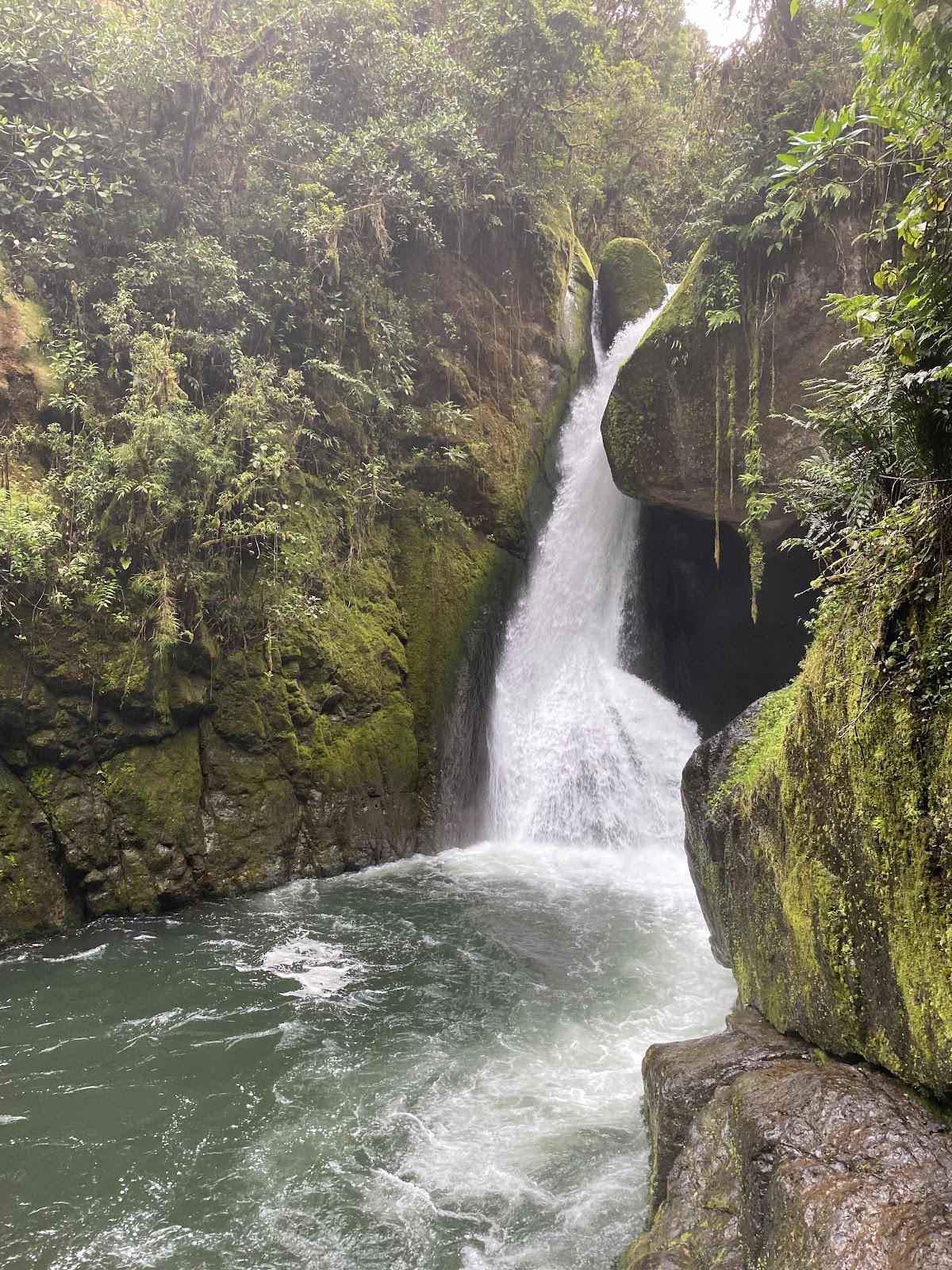 Anstatt nach San Gerardo der Rivas (Ausgangspunkt Cerro Chirripo) führte uns der Weg nun nach San Gerardo de Dota, das ebenfalls in den Bergen liegt. Dieses Tor zum Los Quetzales Nationalpark nutzten auch wir, um in den umliegenden Wäldern nach dem scheuen Quetzal (Vogel), dem Nationaltier von Guatemala, Ausschau zu halten. Leider blieb uns dies wie auch allen anderen verwehrt, doch wir sahen viele Vögel und Einhörnchen im Moos-bewachsenen Wald. Das unerwartete Highlight aber war die Wanderung zu zwei atemberaubenden Wasserfällen am Rio Savegre, welche kaum in irgendwelchen Highlights von Costa Rica erwähnt werden.