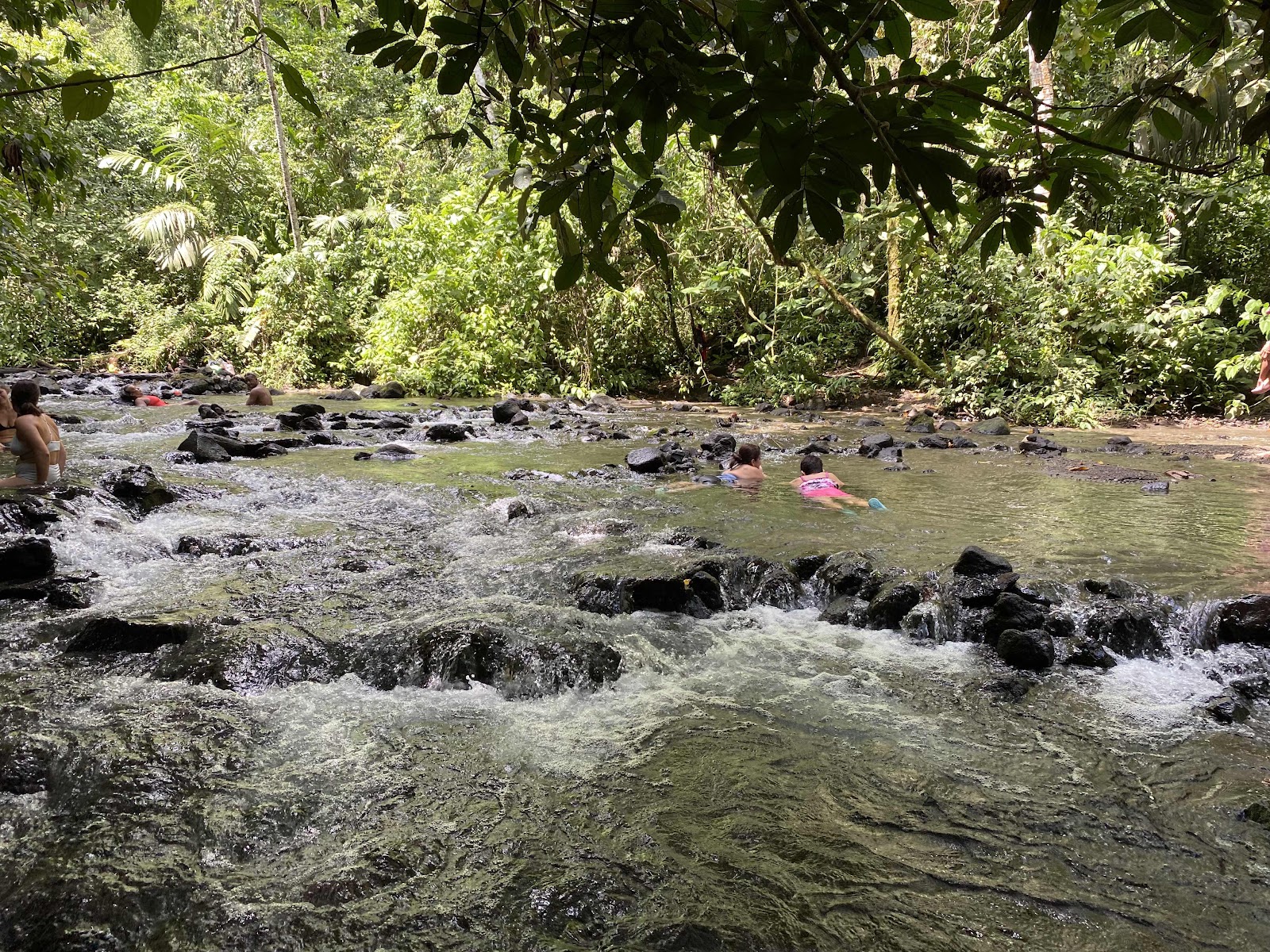 Da wir in den letzten Tagen immer rund 10km pro Tag gewandert sind, gönnten wir unseren Muskeln mal etwas Entspannung. In den kostenlosen heissen Quellen im Rio Tabacon kann man bei ca. 35 Grad Wasssertemperatur im vom Vulkan Arenal erhitzten Wasser baden.